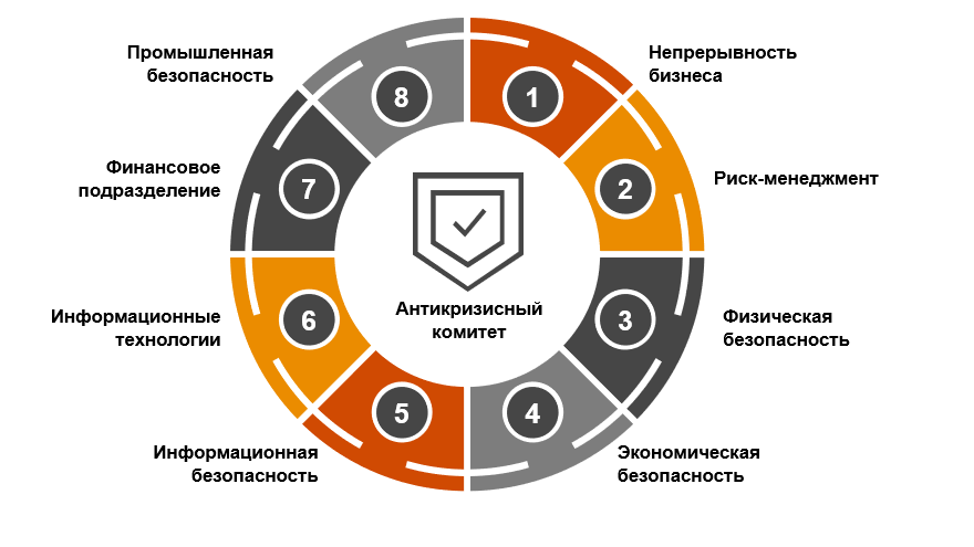 Согласно исследованию PwC «Готовность к кризисным ситуациям» 2020 г. о готовности к кризисным ситуациям, более 50% респондентов привлекают к кризисным тестированиям более 5 различных департаментов, что свидетельствует о понимании взаимосвязи многих процессов внутри компании.