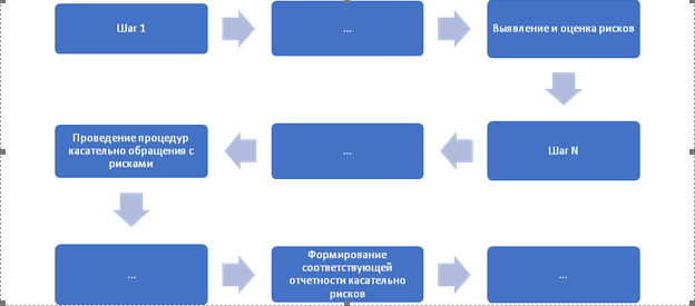 Какой бы процесс/группа процессов ни были выбраны стартовыми для внедрения функции управления рисками, последовательность основных этапов внедрения/актуализации комплекса мер по риск-менеджменту будет неизменной, и именно этот стандарт работы с любыми рисками необходимо описать в вышеупомянутом документе второго уровня: